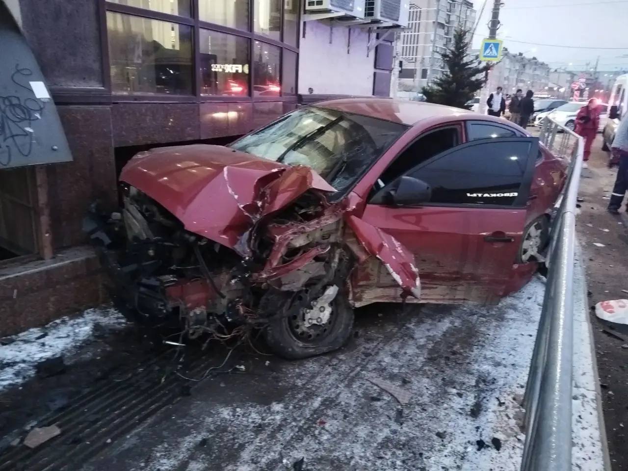 Машины столкнулись, и Hyundai отбросило на тротуар, где стоял 33-летний мужчина.
