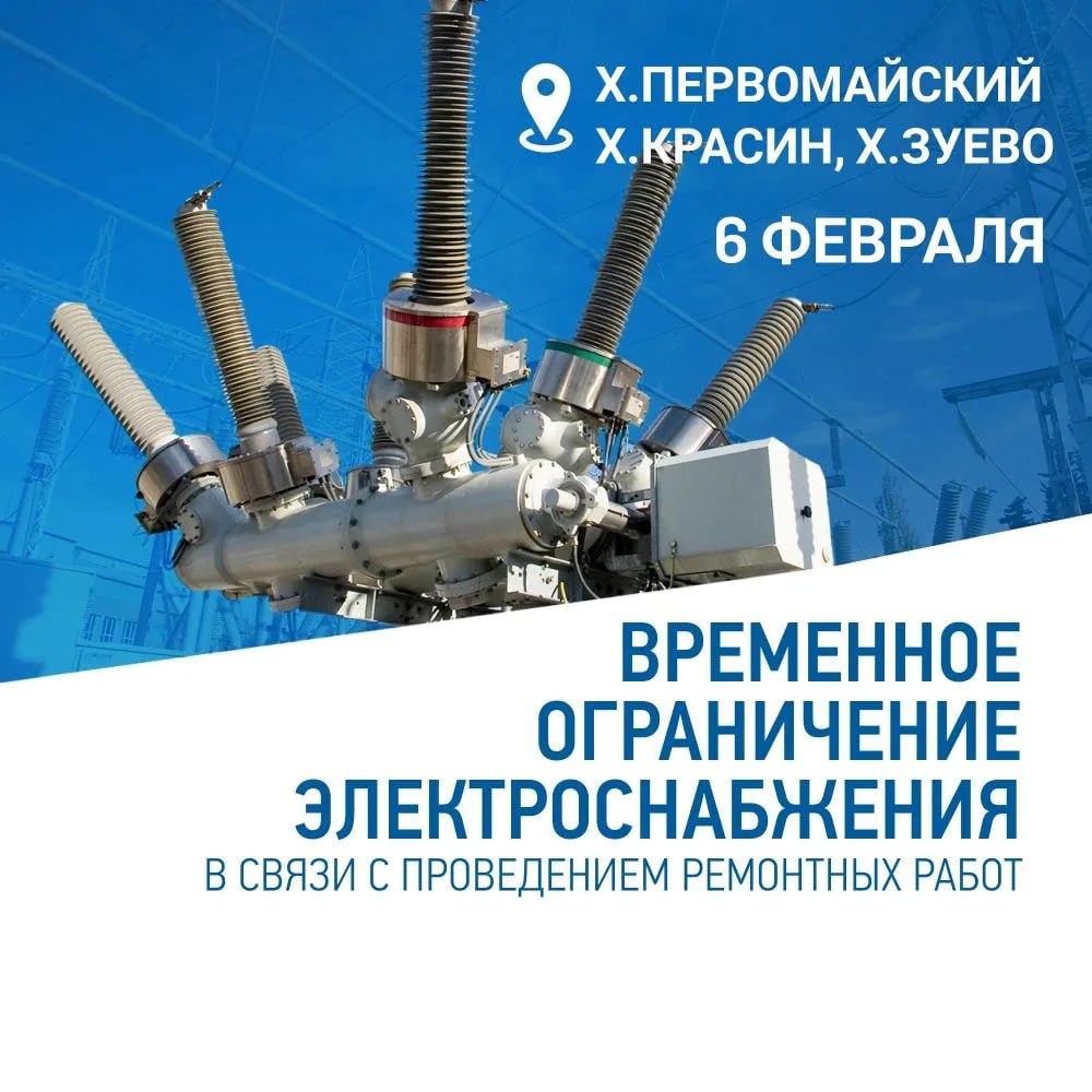 6 февраля 2026 г. с 10:00 до 16:00 часов в х.Первомайский, х.Красин и х.Зуево.