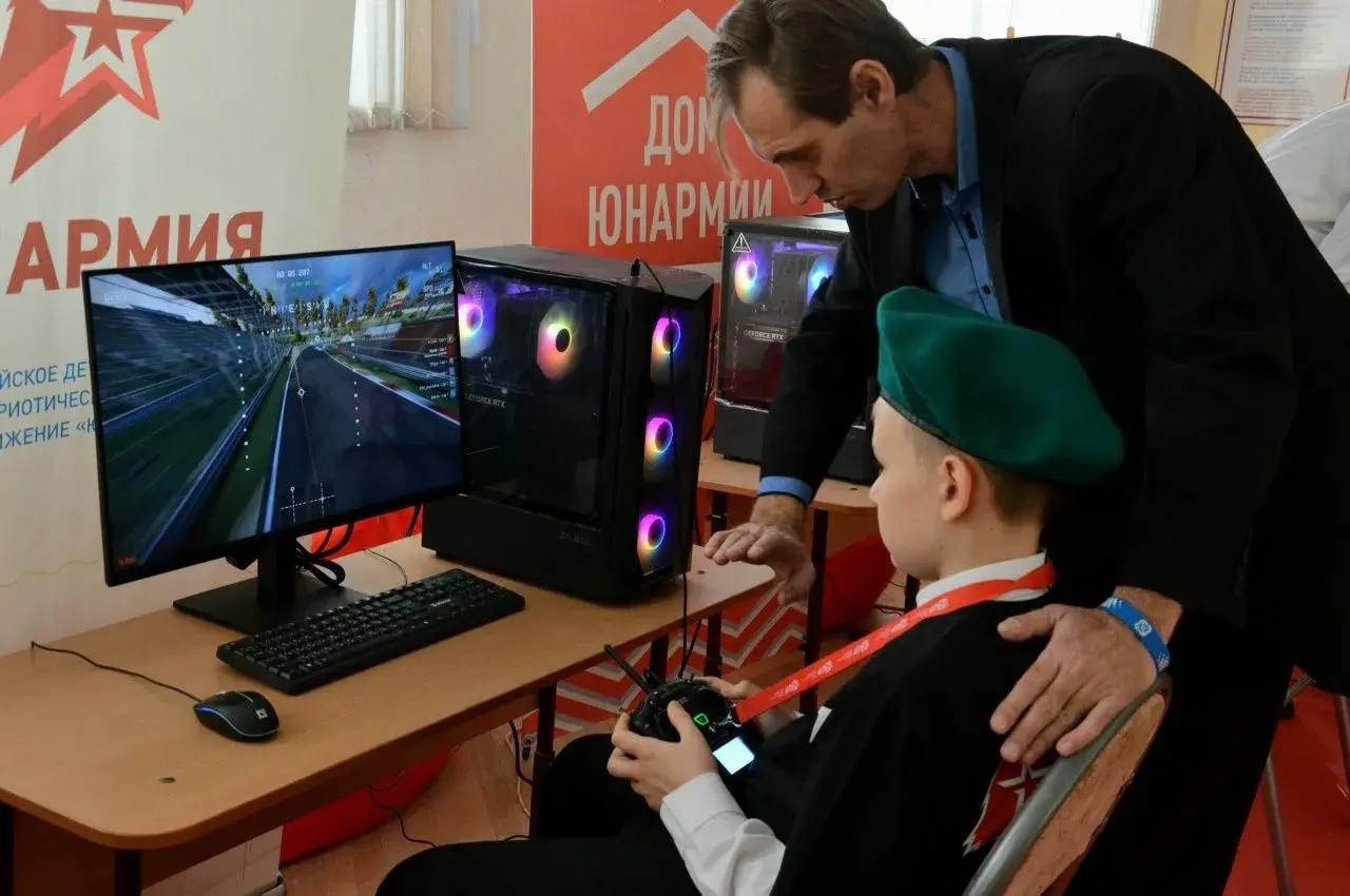 Для обучения школьников используются современные технологии: компьютеры с симуляцией полета, FPV-очки, квадрокоптеры, учебно-тренировочные трассы, пульты управления и гоночные дроны.