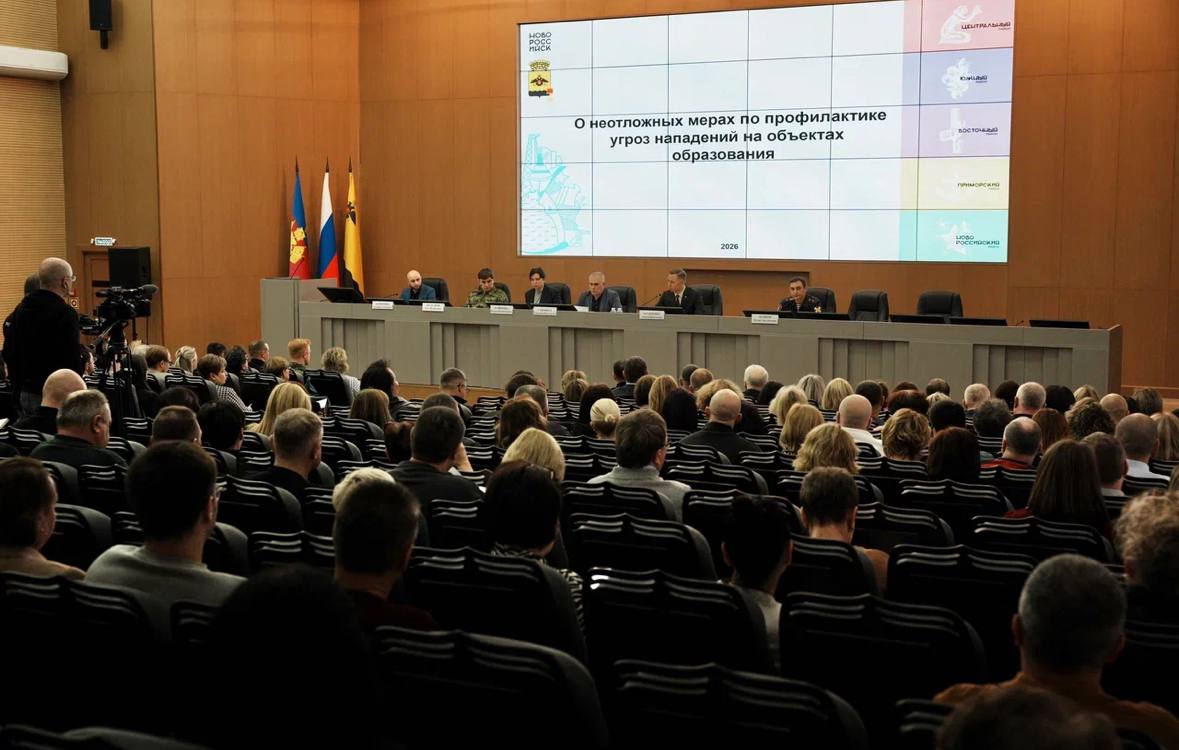 12 февраля в большом зале администрации Новороссийска под председательством главы города Андрея Кравченко состоялось расширенное совещание с руководителями образовательных организаций, посвященное вопросам профилактики угроз нападений на объектах образования. Перед собравшимися выступили представители правоохранительных органов и силовых структур, напомнили инструкции по противодействию терроризму и экстремизму.