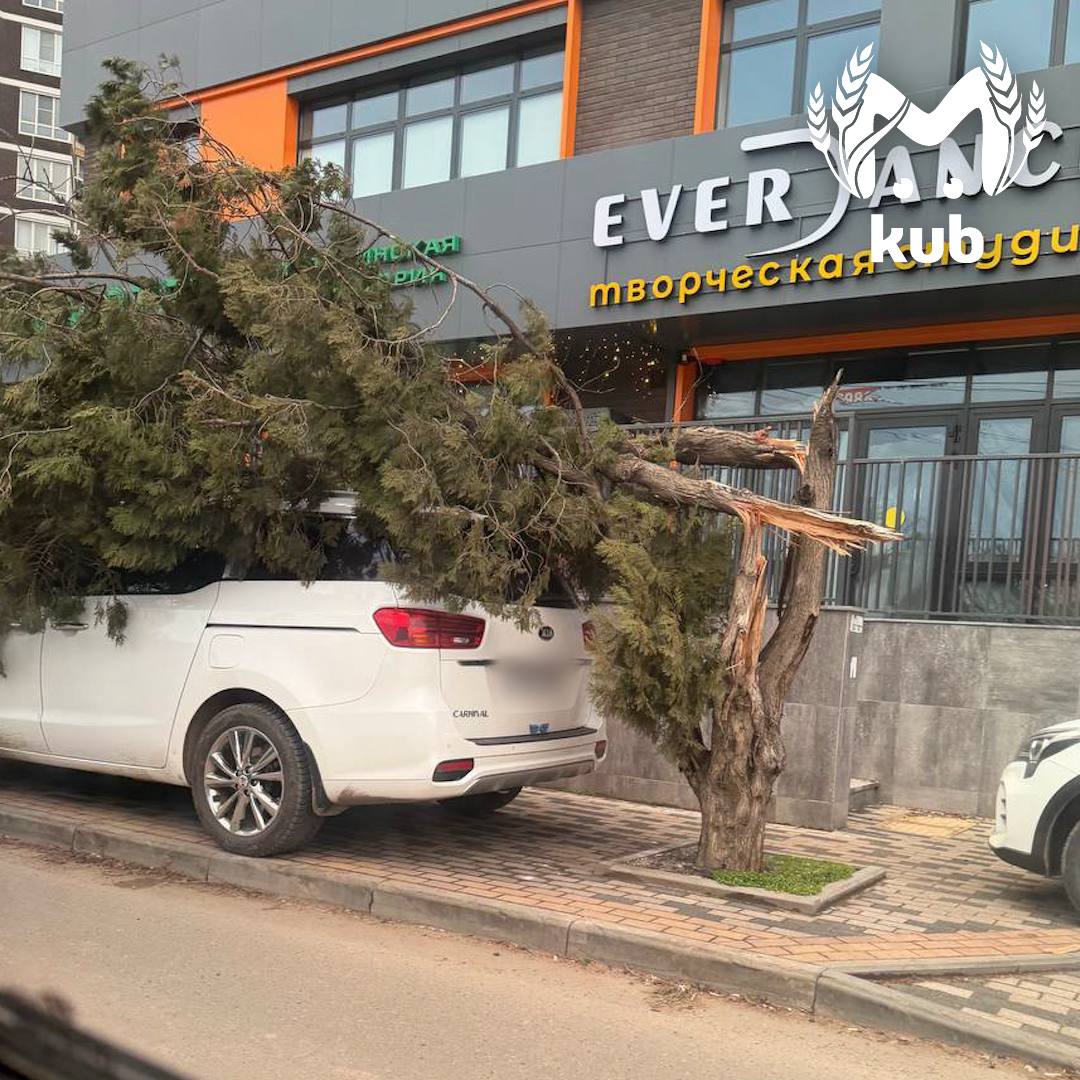 Ветрище продувает Краснодар. Кто припарковался под деревьями — это вы зря.