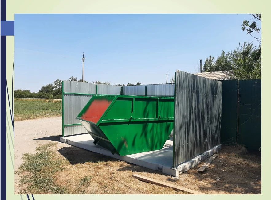 За счет средств районного бюджета в ст. Копанской было установлено 35 контейнеров для накопления ТКО, 15 железобетонных плит под мусорные баки, а по ул. Калинина, 109 – контейнер для крупногабаритных отходов.