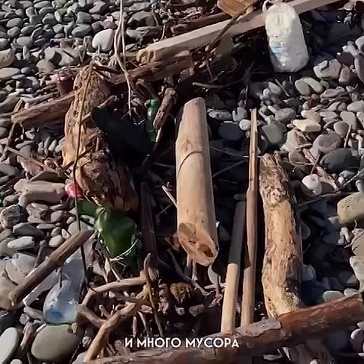 Как щепки после шторма разбросало: забор, якорь, волнорезы и валуны. А кто-то всё ещё играет со стихией.