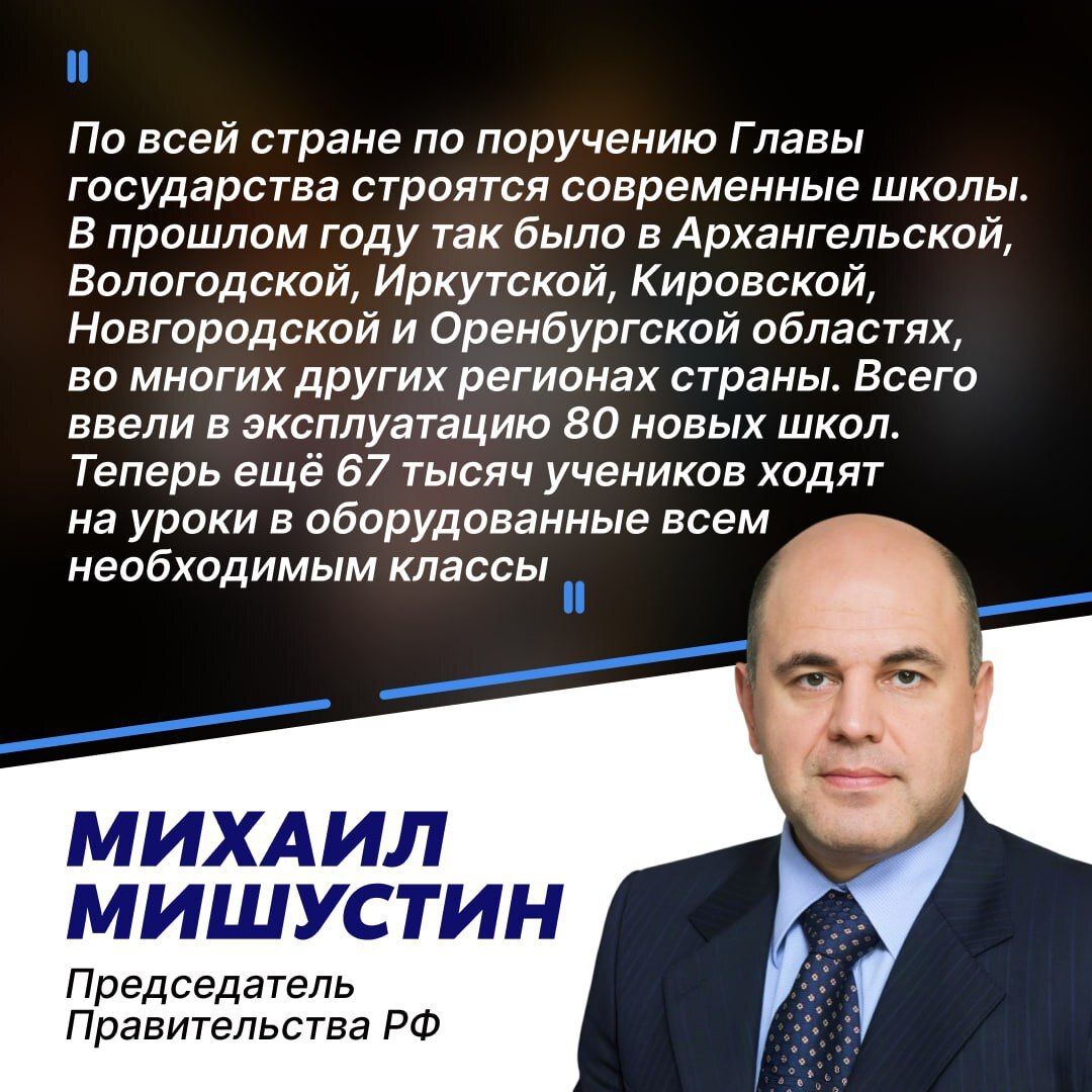 Важно, чтобы инвестиции были не только в знания, но и в стены, где эти знания получают. Учить и учиться лучше в современных условиях. Чтобы дети с интересом шли на уроки, по всей стране строятся новые школы.