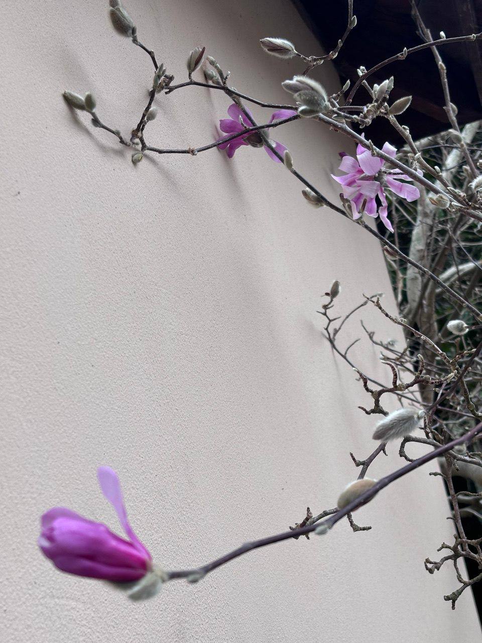 Но самый главный сюрприз — магнолия! Она уже начала раскрывать свои роскошные бутоны.