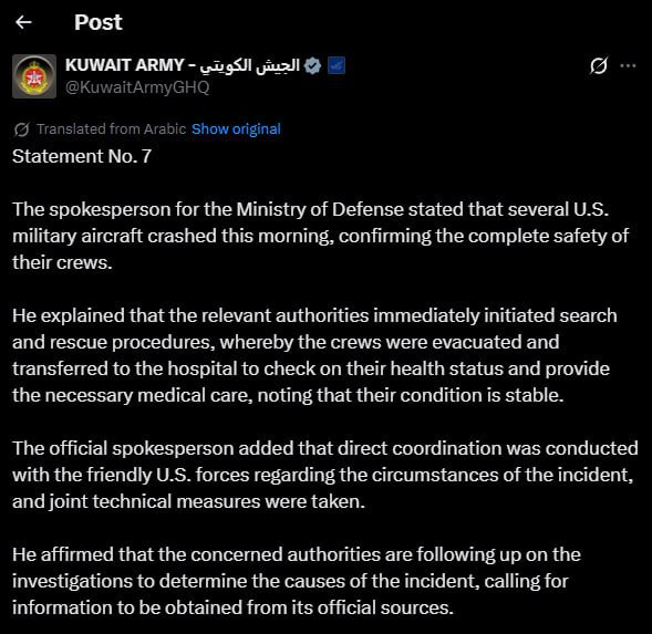 Уже несколько военных самолетов США разбились в Кувейте, сообщает минобороны страны.