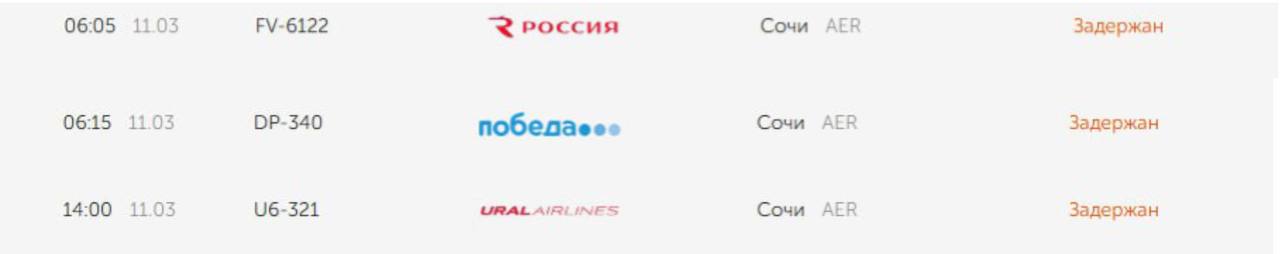 Вылеты из Екатеринбурга задержаны на более чем 20 часов, из Тюмени и Перми — на 11 часов, из Сургута — на 13 часов, а из Челябинска — на пять часов. В самом Сочи пассажиры также все еще ожидают своих рейсов.