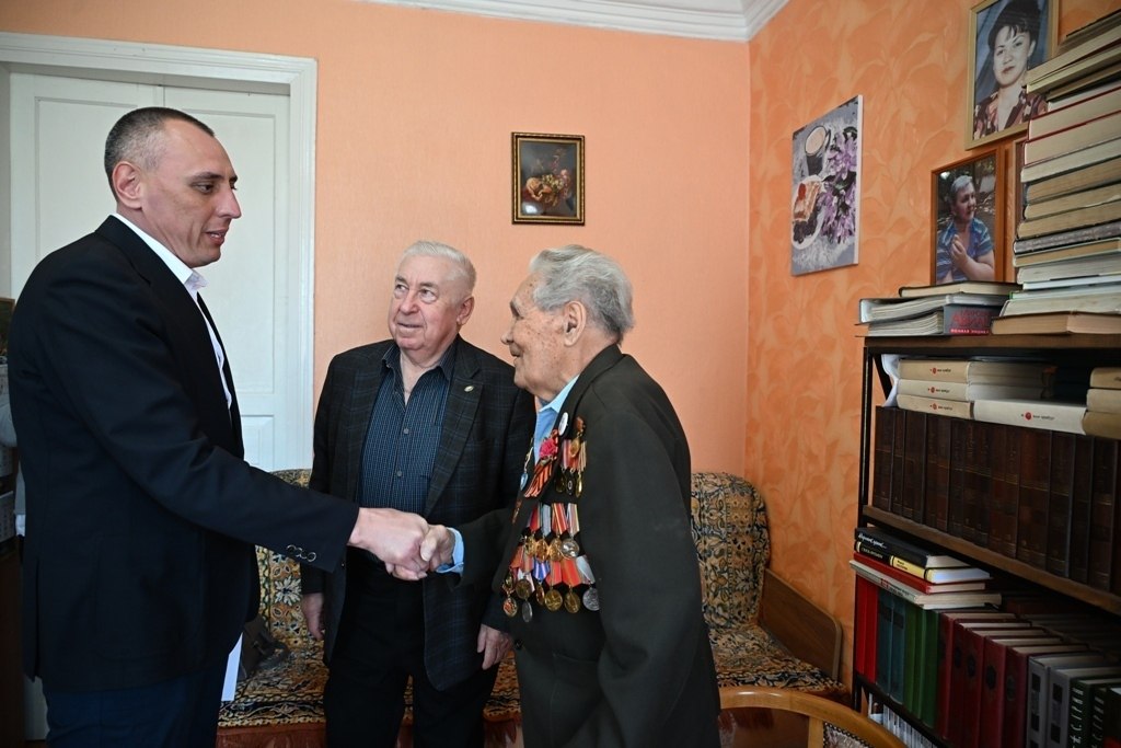 По поручению главы Ейского района Романа Бублика со знаменательным событием фронтовика поздравил заместитель руководителя муниципалитета Андрей Филипьев. Вместе с ним наилучшие пожелания имениннику адресовали старший помощник Ейского межрайонного прокурора Александр Телега, заместитель главы города Михаил Тютюнников, председатель районного совета ветеранов Владимир Киселев.