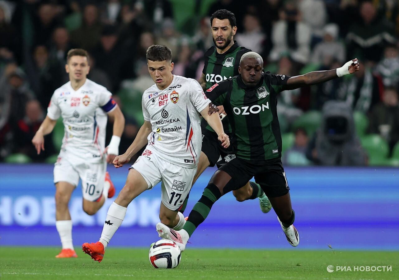 Встреча в Краснодаре завершилась со счетом 4:0. Дубль оформил Жоау Батчи (51-я и 67-я минуты), мячи также забили Дуглас Аугусто (20) и Джон Кордоба (58).