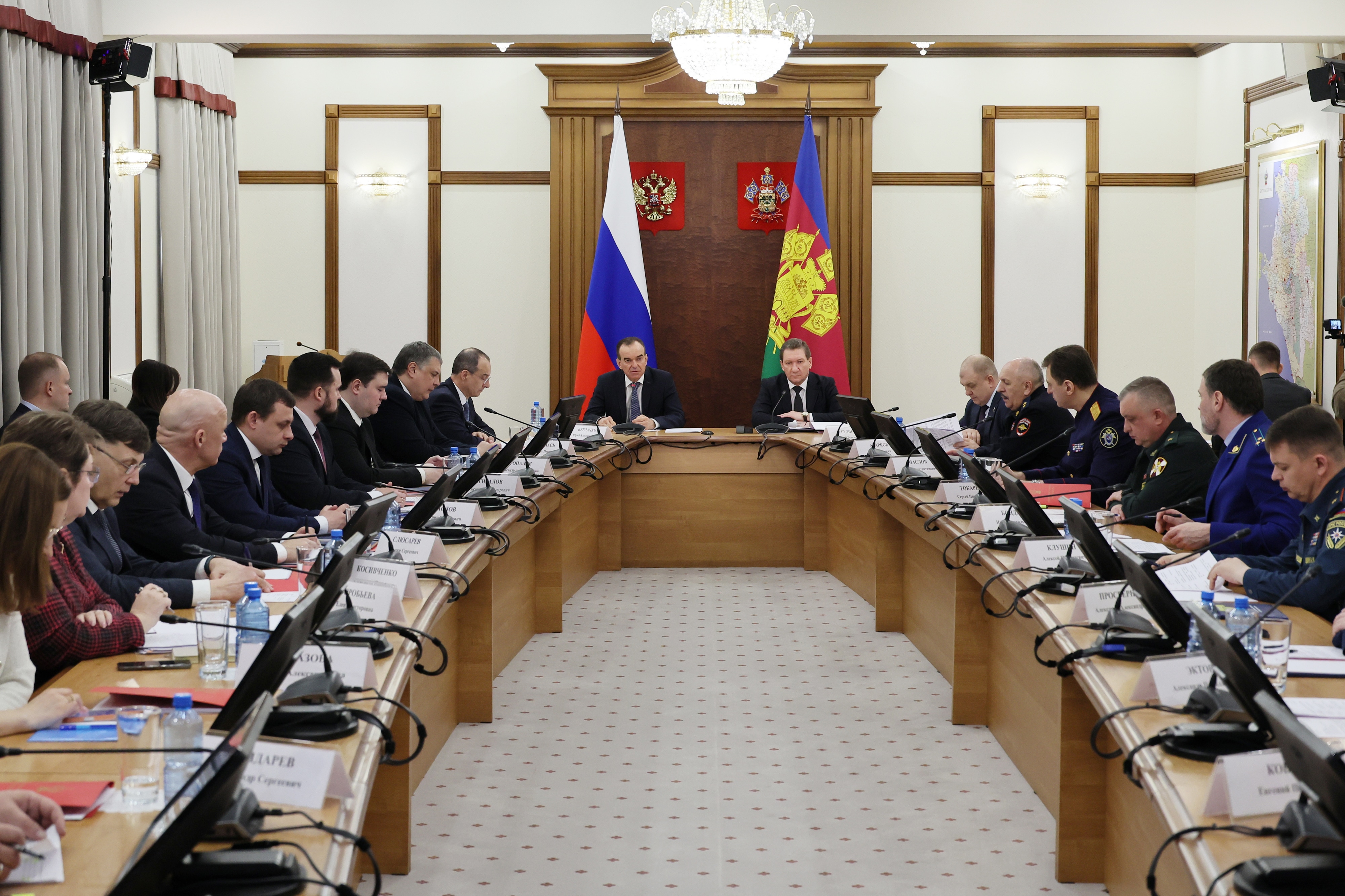 Губернатор Краснодарского края Вениамин Кондратьев и начальник Управления ФСБ России по региону Леонид Михайлюк провели заседание Антитеррористической комиссии.