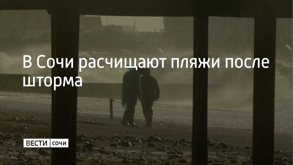 На пляжах курорта расчищают и убирают прибрежную линию после шторма