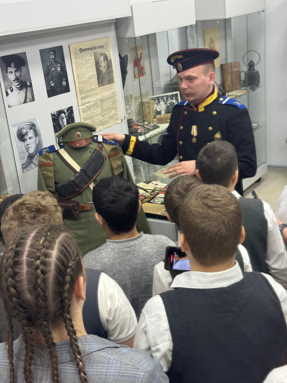 На экскурсии ребята послушали лекцию о событиях Первой мировой войны и узнали, как велись боевые действия в начале XX века. Также школьники попробовали себя в интерактиве «Штыковой бой» с элементами строевой подготовки и приняли участие в записи в «охотники» Русской императорской армии.