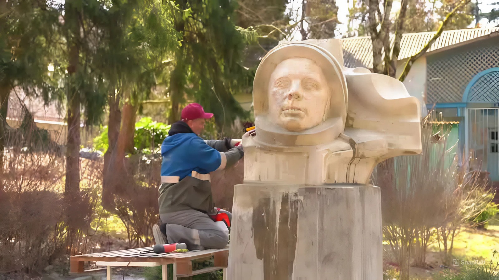 Бюст первого космонавта установлен на одной из аллей пансионата в селе Шепси. Памятнику больше полувека. За это время бетонной композиции сильно досталось. Год за годом вода точила бюст Гагарина, стали появляться трещины и поры, некоторые элементы и вовсе норовили отпасть.