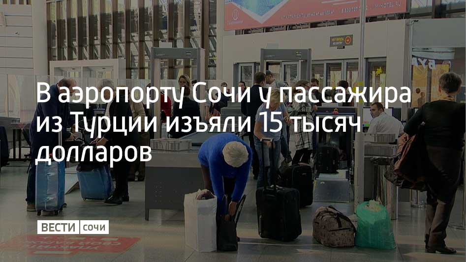В аэропорту Сочи задержали пассажира из Турции, который пытался провезти 25 тысяч долларов через "зеленый коридор". Мужчина не стал заполнять необходимые документы, но рассказал таможенникам о сумме наличных в ручной клади.