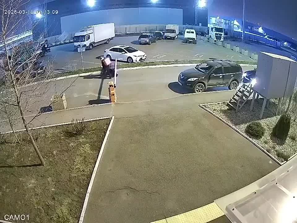 Шлагбаум остановил собой и опрокинул курьера в Краснодаре.
