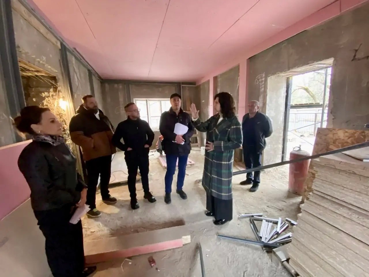 На данный момент уже выполнены утепление фасада и устройство пароизоляции, кладка внутренних колонн, облицовка перекрытий огнестойкими материалами, обрамление дверных проемов на обоих этажах. Общие работы идут строго по графику. В ходе встречи также обсудили проблемные моменты с обустройством наружных сетей и установили четкие сроки их решения.