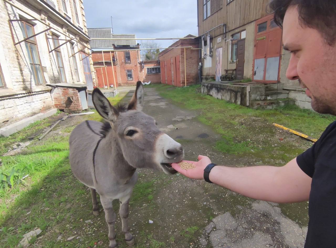 Ослик сбежал из цирка в Кропоткине и теперь ищет дом.