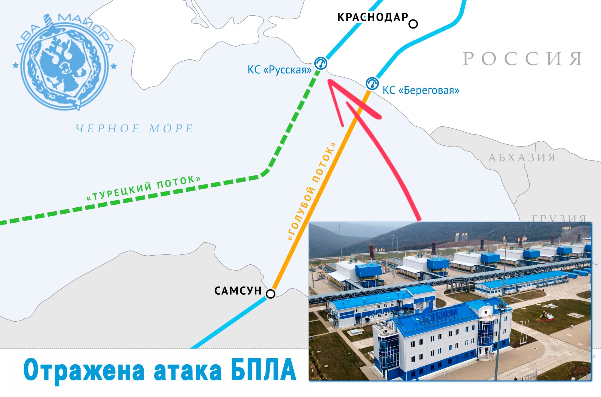 По официальным данным, целями атаки трёх беспилотников самолётного типа была компрессорная станции «Русская», которая обеспечивают работу магистрального газопровода «Турецкий поток».