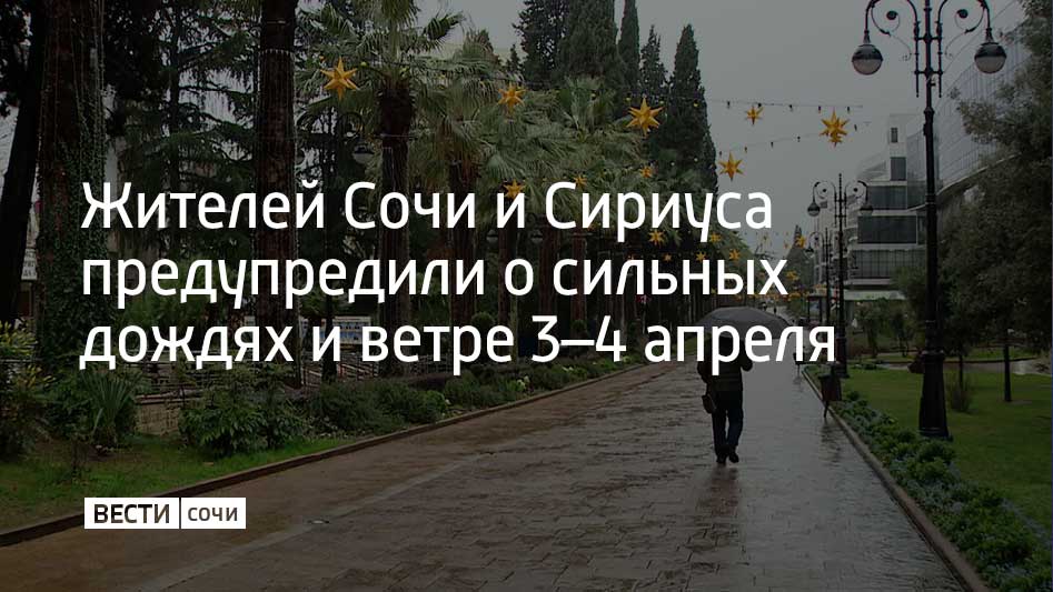 В Сочи и на федеральной территории Сириус днем и вечером 3 апреля ожидаются грозы со шквалистым ветром до 15–17 метров в секунду. Утром и днем 4 апреля местами прогнозируется сильный дождь.