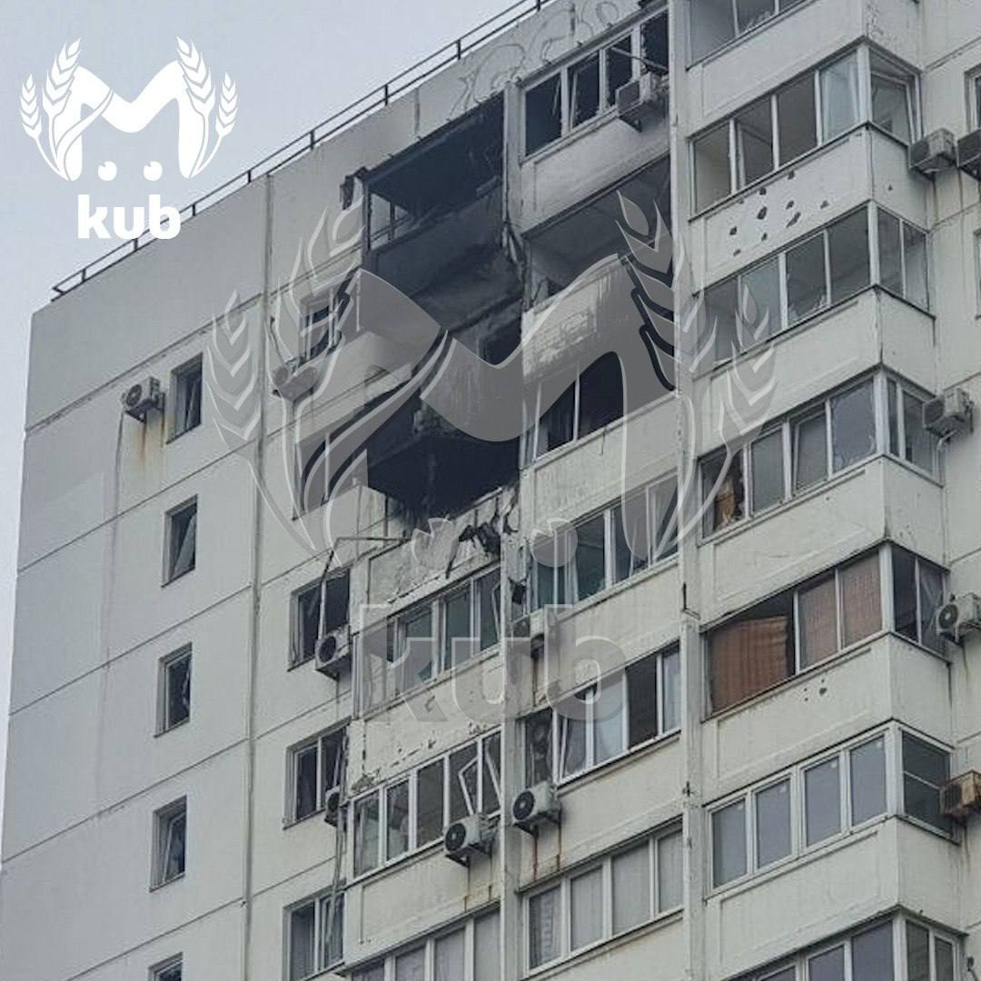 На первом фото — многоэтажка, которую разбомбили обломки украинского БПЛА. Оттуда скорая увезла трёх человек.