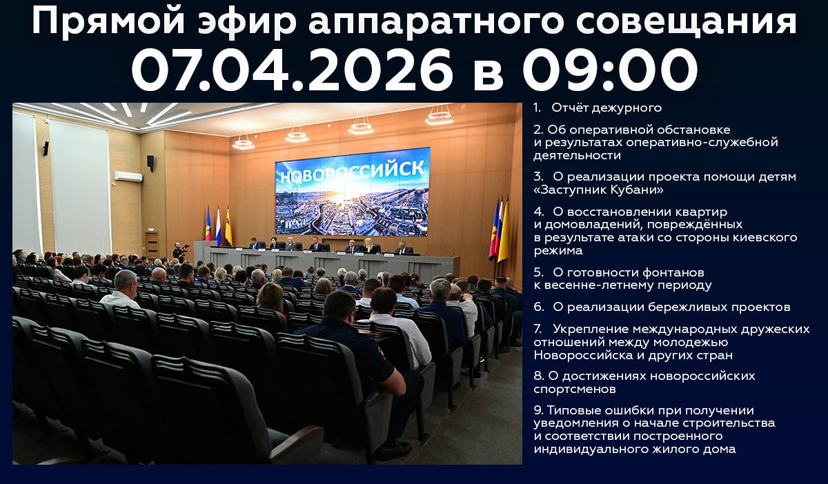 Новороссийцы, завтра в 9:00 начнётся трансляция аппаратного совещания.
