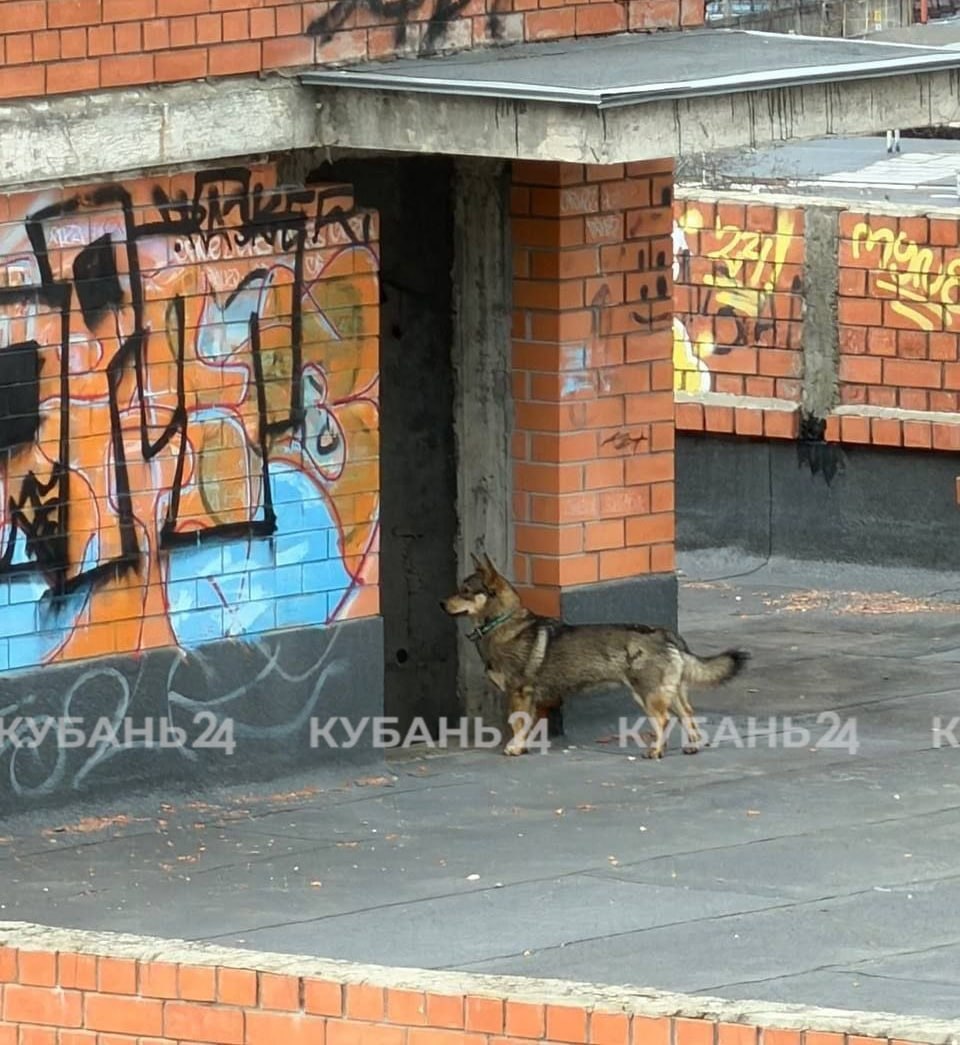 Собака с ошейником несколько дней бегает по крыше недостроя в Краснодаре.