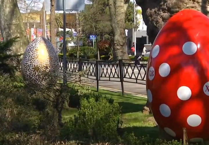 Яркие инсталляции в форме пасхальных яиц, украшенные сакральной символикой, усиливают предвкушение торжественности Светлого Воскресения.