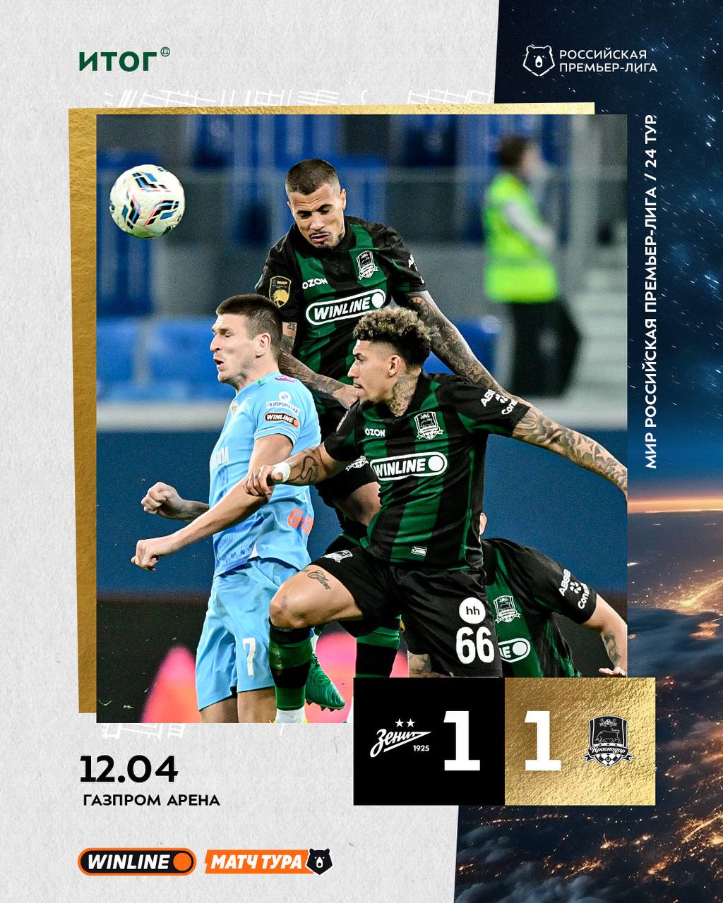 С.-ПЕТЕРБУРГ, 12 апр - РИА Новости. "Краснодар" на выезде сыграл вничью с петербургским "Зенитом" в матче 24-го тура чемпионата России по футболу.Встреча, которая прошла в воскресенье в Санкт-Петербурге в присутствии 48 563 зрителей, завершилась...