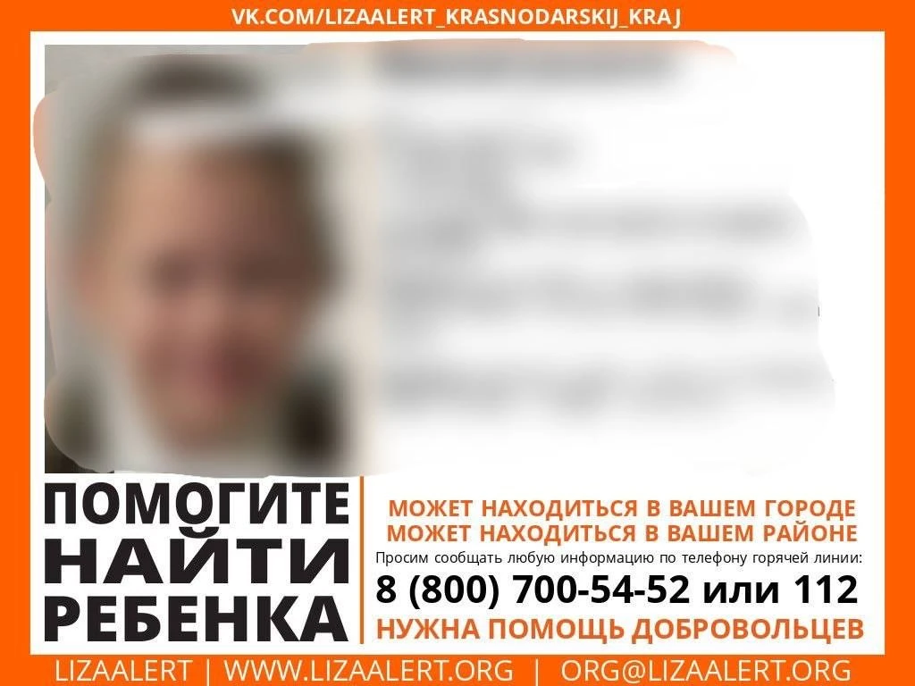 Найден четырехлетний мальчик, потерявшийся во время прогулки в Краснодаре.