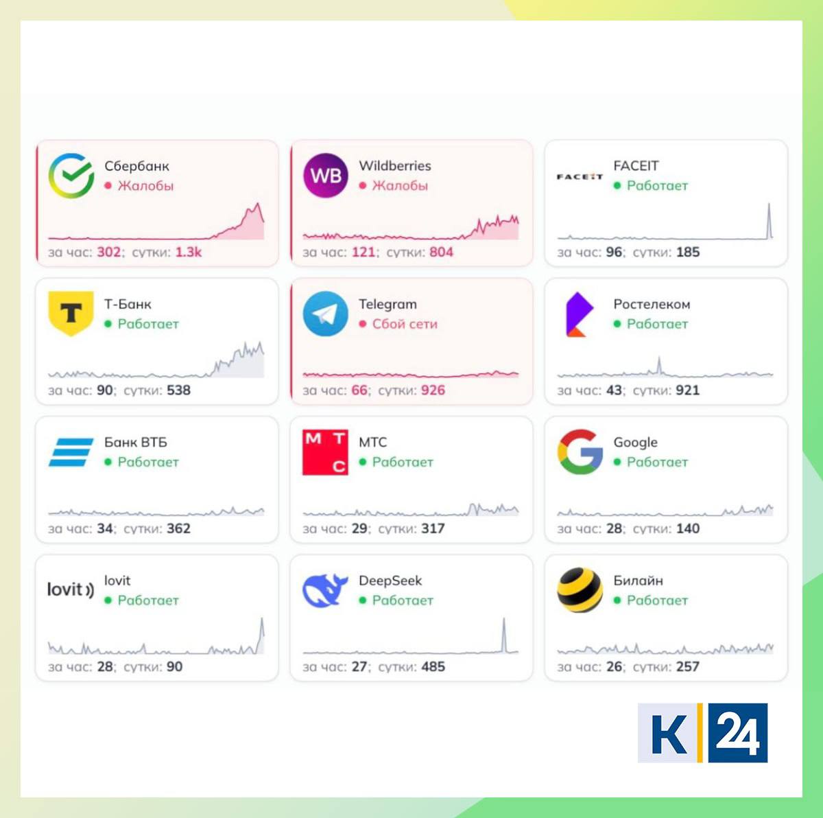 Пользователи жалуются на работу приложений Сбера, Wildberries и Telegram.