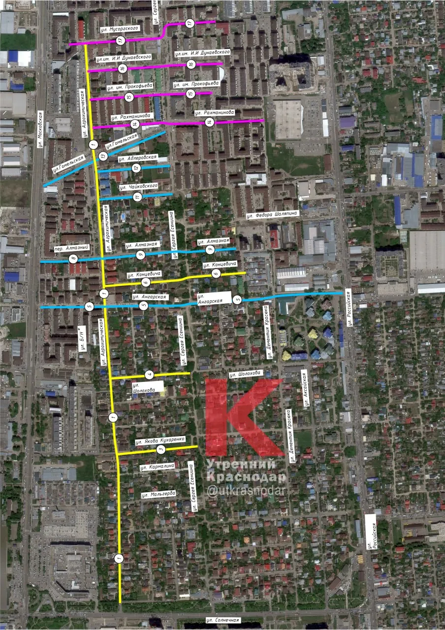 На фото - план реконструкции улиц в Музыкальном микрорайоне Краснодара.