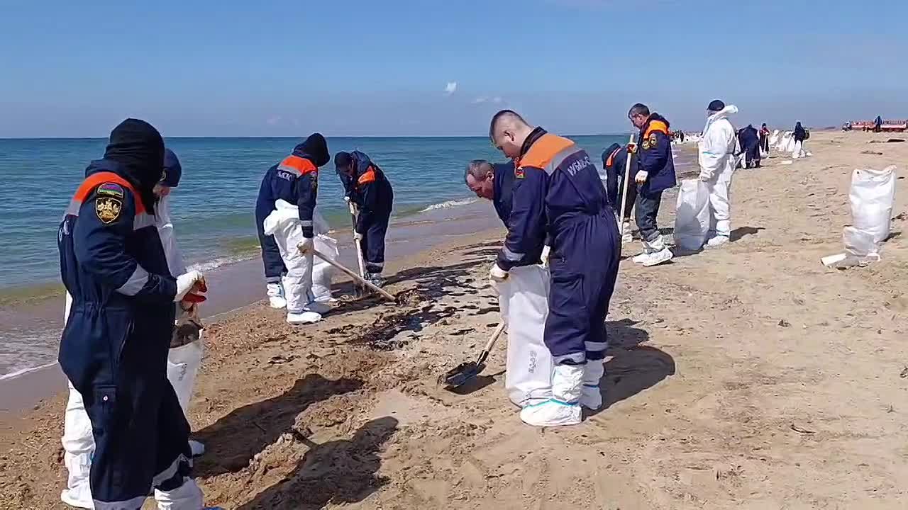 На косе между селом Витязево и станицей Благовещенской завершились основные работы по сбору выбросов нефтесодержащих продуктов