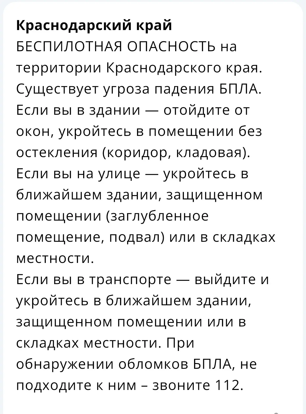 «Беспилотная опасность» объявлена на Кубани