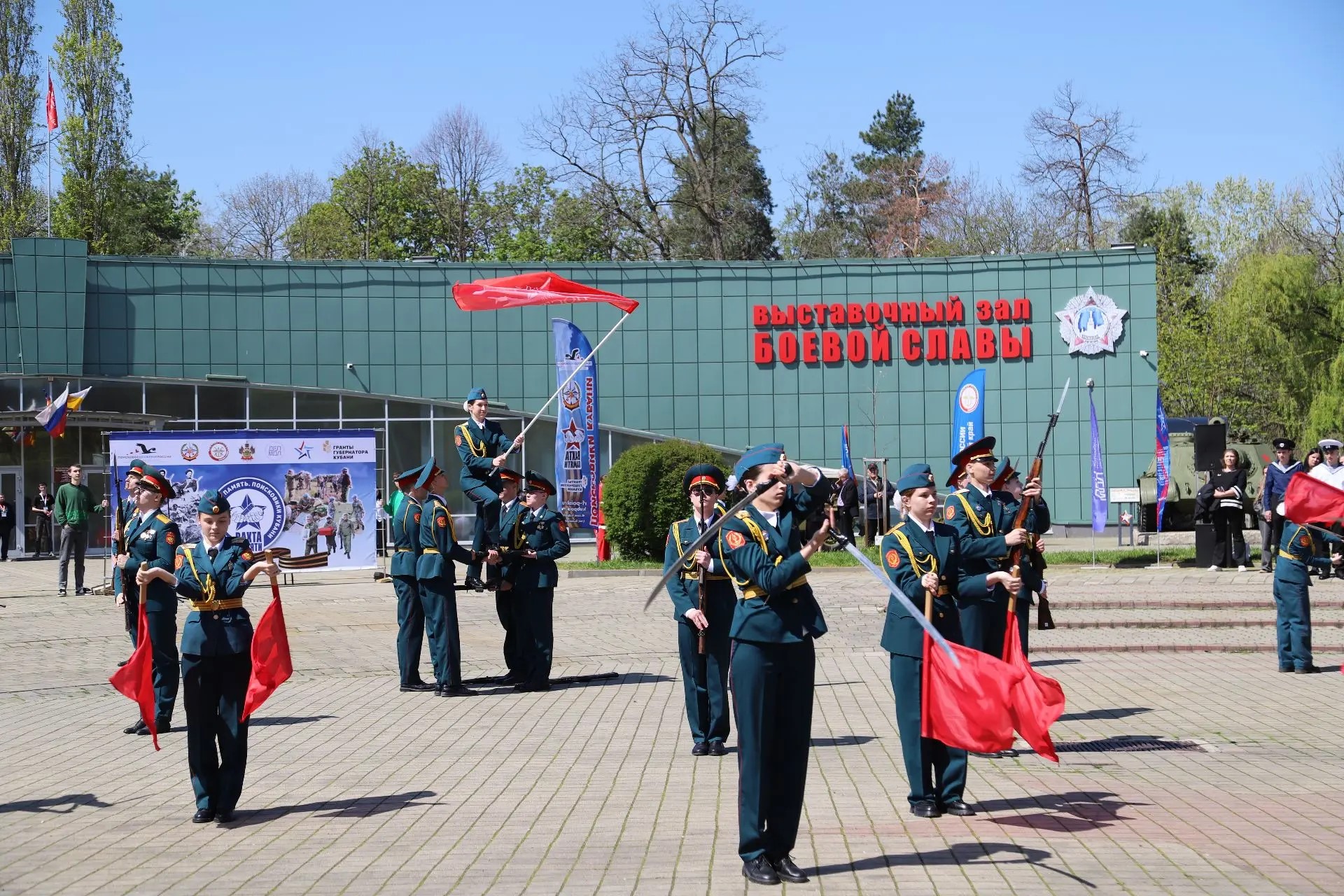 В Краснодаре состоялось торжественное открытие краевого этапа Всероссийской акции «Вахта Памяти». Мероприятие прошло на площади перед Выставочным залом Боевой славы в парке им. 30-летия Победы. Участниками стали представители органов власти, ветераны специальной военной операции, поисковики, воспитанники военно-патриотических клубов, юнармейцы и активисты патриотических общественных организаций. Всего в церемонии приняли участие около 300 человек со всего края.
