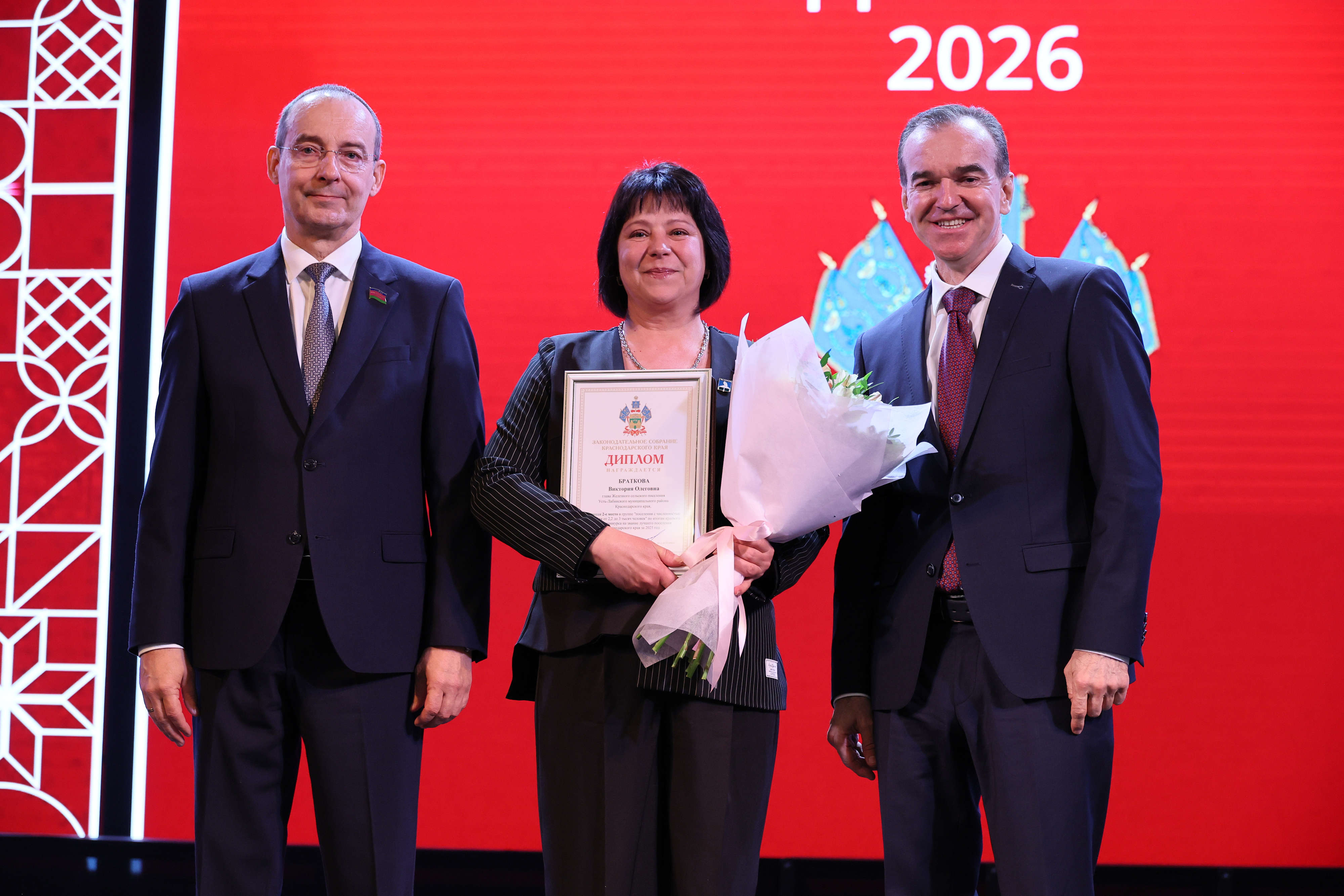В рамках мероприятия Вениамин Кондратьев и Юрий Бурлачко вручили победителям смотра-конкурса на звание лучшего поселения почетные грамоты краевой администрации и дипломы ЗСК. Отличившиеся получили средства на развитие местных территорий – от 1 до 5 миллионов рублей.