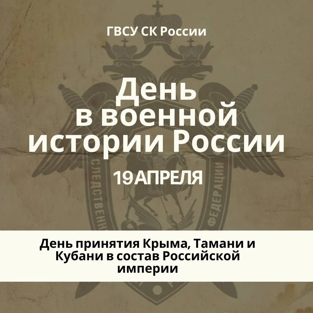 19 апреля 1783 года Крым, Тамань и Кубань были официально присоединены к Российской империи по указу Екатерины II.