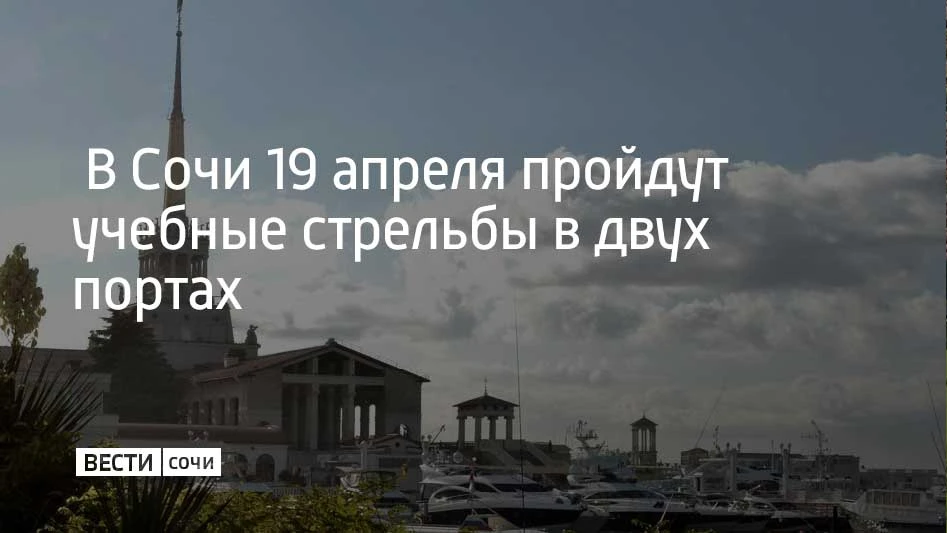 В воскресенье, 19 апреля, в акватории Морского порта Сочи с 11:00 до 23:00 будут проходить учебные стрельбы. В 17:00 — в акватории Имеретинского морского порта.
