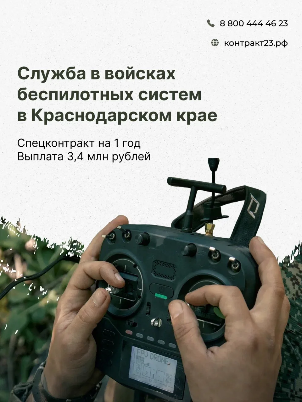 Узнать подробнее о местах и условиях заключения контракта, а также о денежных выплатах военнослужащим можно по круглосуточному телефону — 8(800)444-46-23. Либо на сайте контракт23.рф