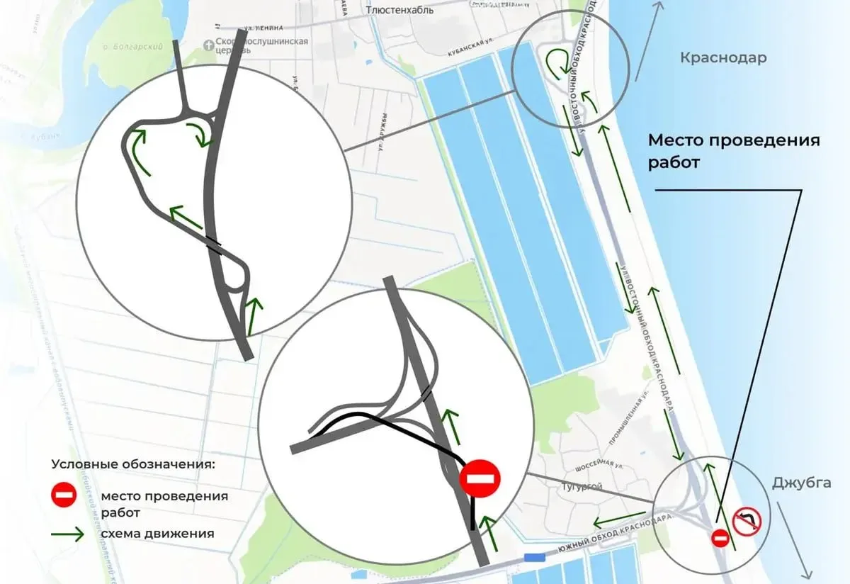 До мая будет закрыт съезд с трассы М-4 «Дон» на Южный обход Краснодара.