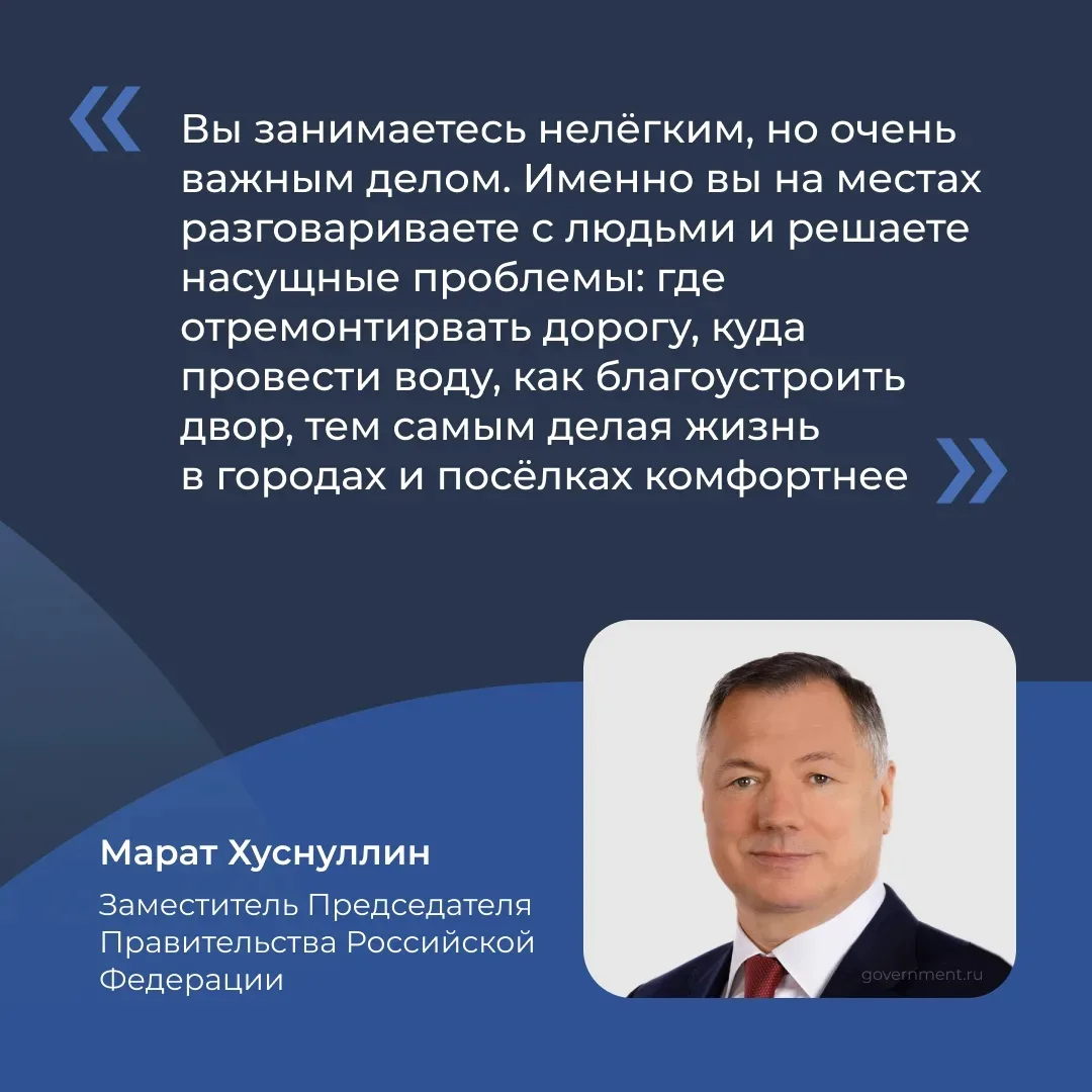 В своём поздравлении вицепремьер Марат Хуснуллин подчеркнул: именно муниципальное сообщество напрямую влияет на качество жизни в городах и посёлках.