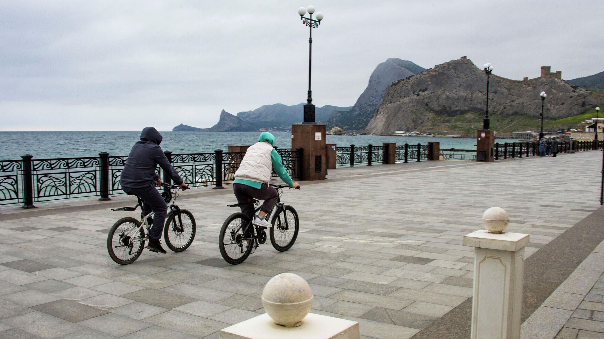СИМФЕРОПОЛЬ, 21 апр - РИА Новости Крым. Сегодня в Судаке погода для променада по набережной нелетная. Если еще вчера было солнечно и до +17 градусов, что сегодня всего +10, и небу чего-то взгрустнулось, того и гляди пустит слезу. Юго-западный ветер сменяется северо-западным, у моря холодно. Фотограф ворчит, что свет не тот и картинки нету. Но ведь редакционного задания никто не отменял. Так что идем по набережной, которой совсем скоро встречать сезон.