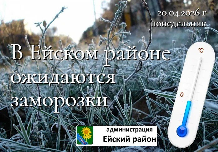 По данным Краснодарского ЦГМС 24-26 апреля местами крае ожидаютс заморозки воздухе и на поверхности почвы -1...-3° категории опасного явления (ОЯ). Будьте внимательны и осторожны! Соблюдайте меры безопасности! Тел. 01, 101, 112.