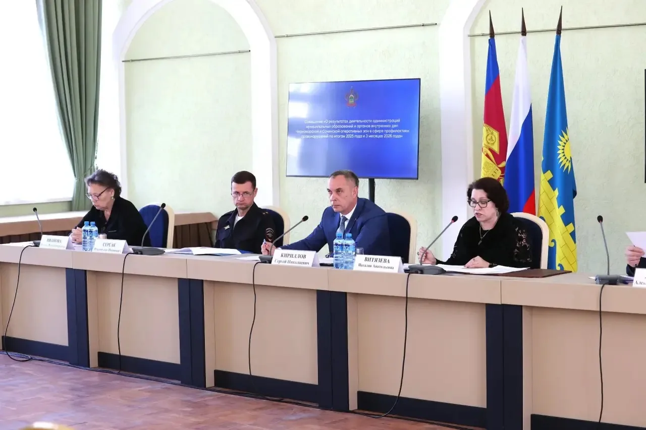 Сегодня в Гортеатре состоялось совещание по результатам работы администраций муниципалитетов и органов внутренних дел Черноморской и Сочинской оперативных зон в сфере профилактики правонарушений за 2025 и 3 месяца 2026 года. Его провел замначальника управления региональной безопасности администрации Краснодарского края Сергей Кириллов. В работе приняли участие представители муниципальных образований городов Анапа, Новороссийск, Геленджик, Туапсе и Сочи, а также полиции, министерств здравоохранения, труда и социального развития Кубани, начальники филиалов УИИ ГУФСИН по Краснодарскому краю, а также финалист кадрового конкурса «Герои Кубани», кавалер ордена Мужества и ордена «За заслуги перед Отечеством» Евгений Двоеглазов.
