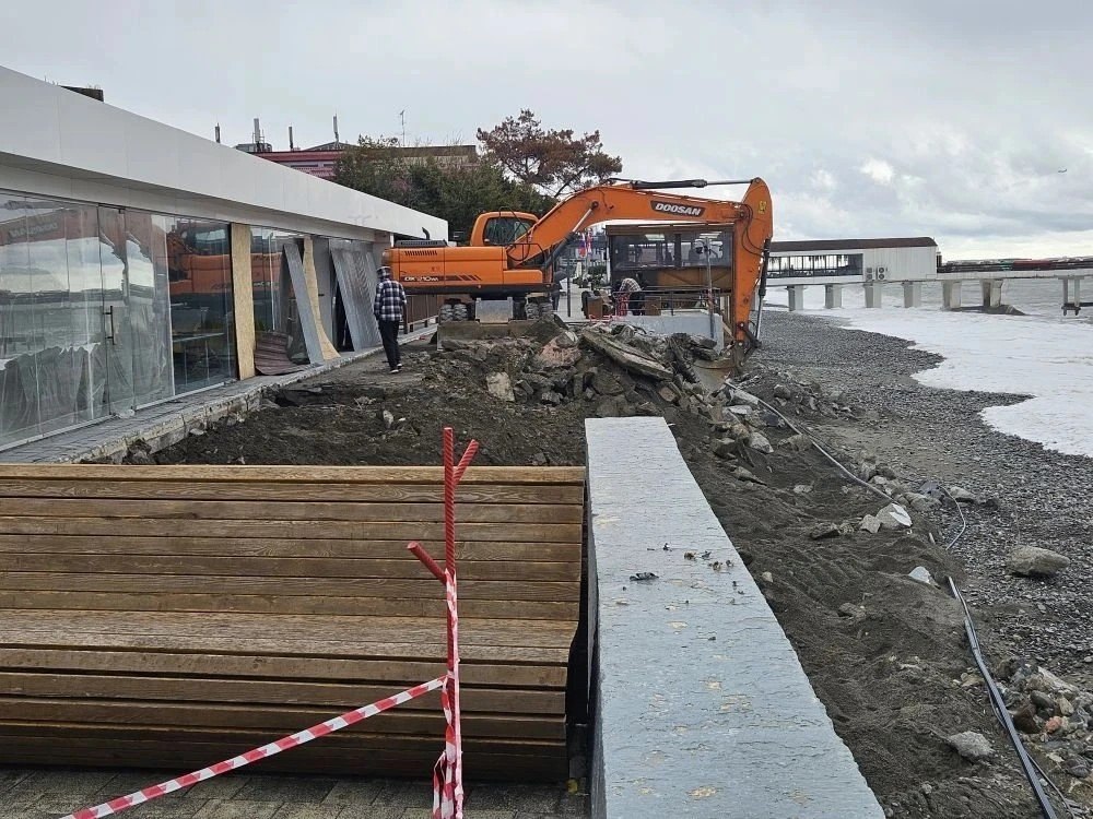 В Адлерском районе Сочи приступили к восстановлению морской набережной, частично разрушенной сезонными штормами