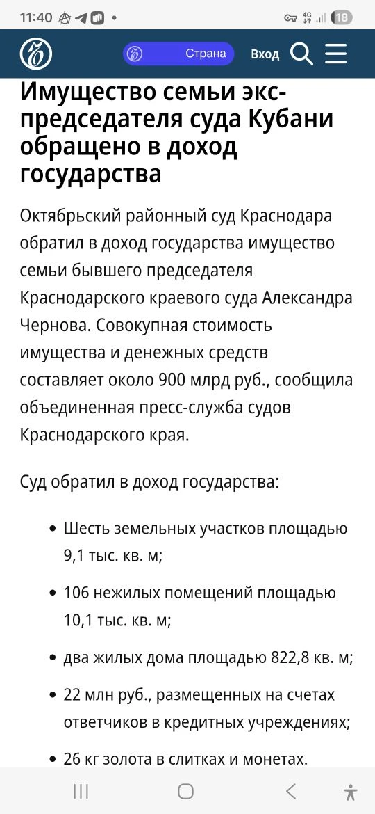 Имущество членов семьи экс-председателя Краснодарского краевого суда Александра Чернова на общую сумму порядка 900 млн руб обращено в доход государства (с) Коммерсант