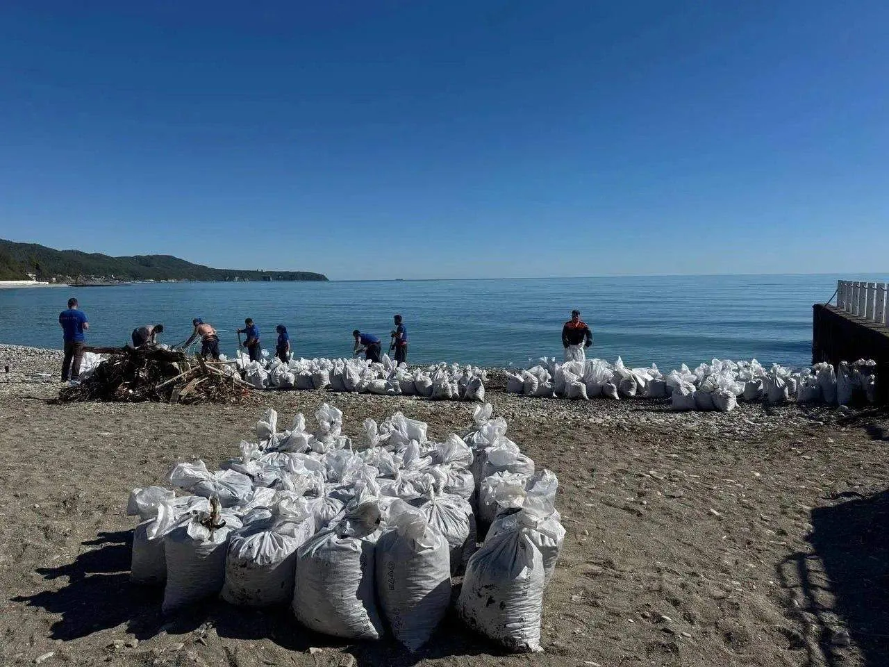 Работы продолжаются на территории морского терминала, откуда произошла утечка в результате атаки БПЛА, в устье реки Туапсе. Там установили шесть каскадов боновых заграждений и оборудовали нефтеловушку.
