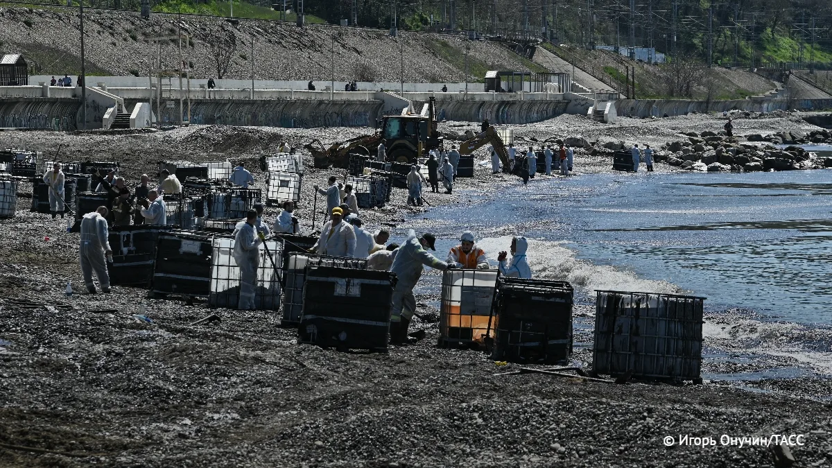 В Туапсе увеличили группировку по ликвидации разлива нефтепродуктов из-за атаки БПЛА до 360 человек и более 60 единиц техники, сообщили в оперштабе Кубани.