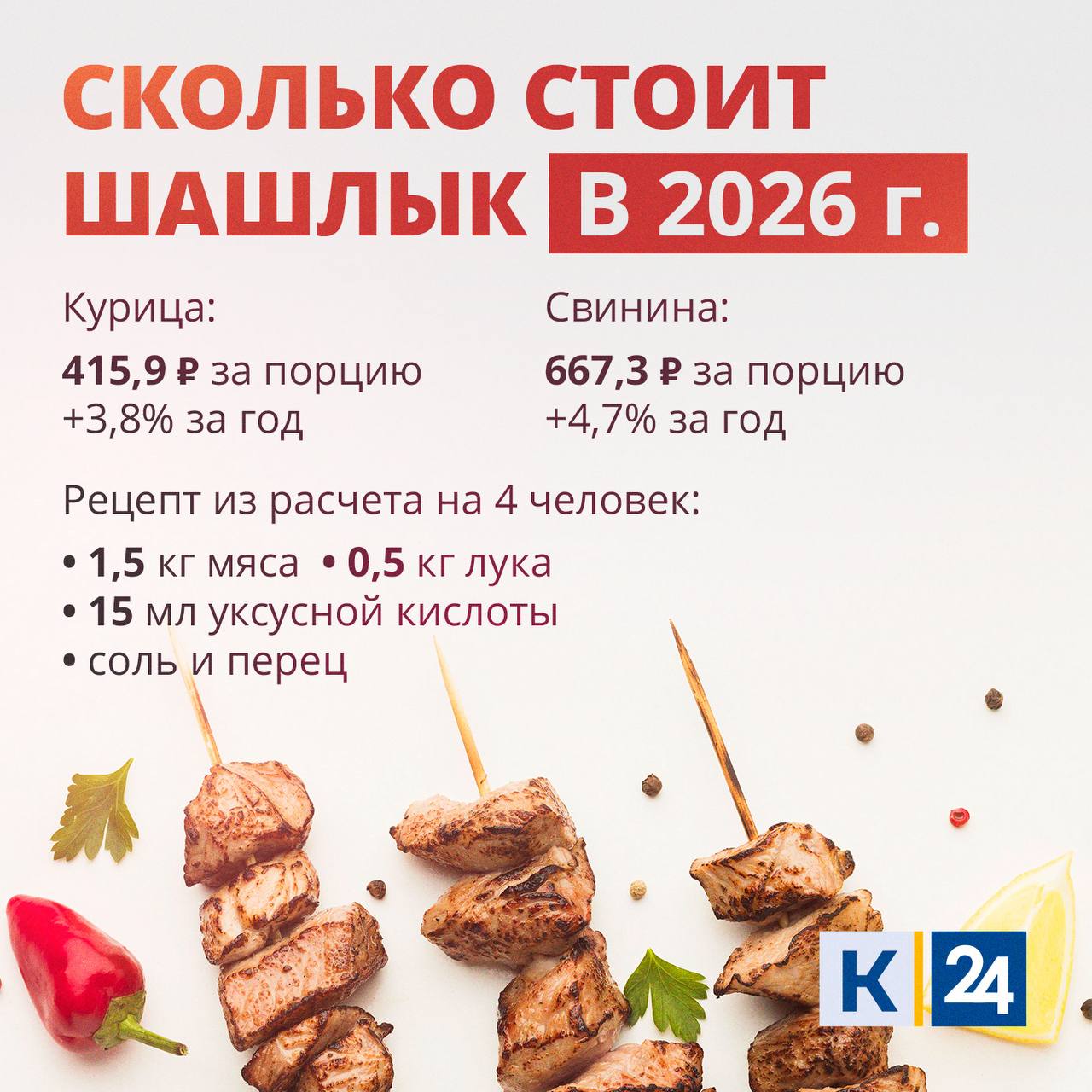 Во сколько обойдется приготовление шашлыка в 2026 году?
