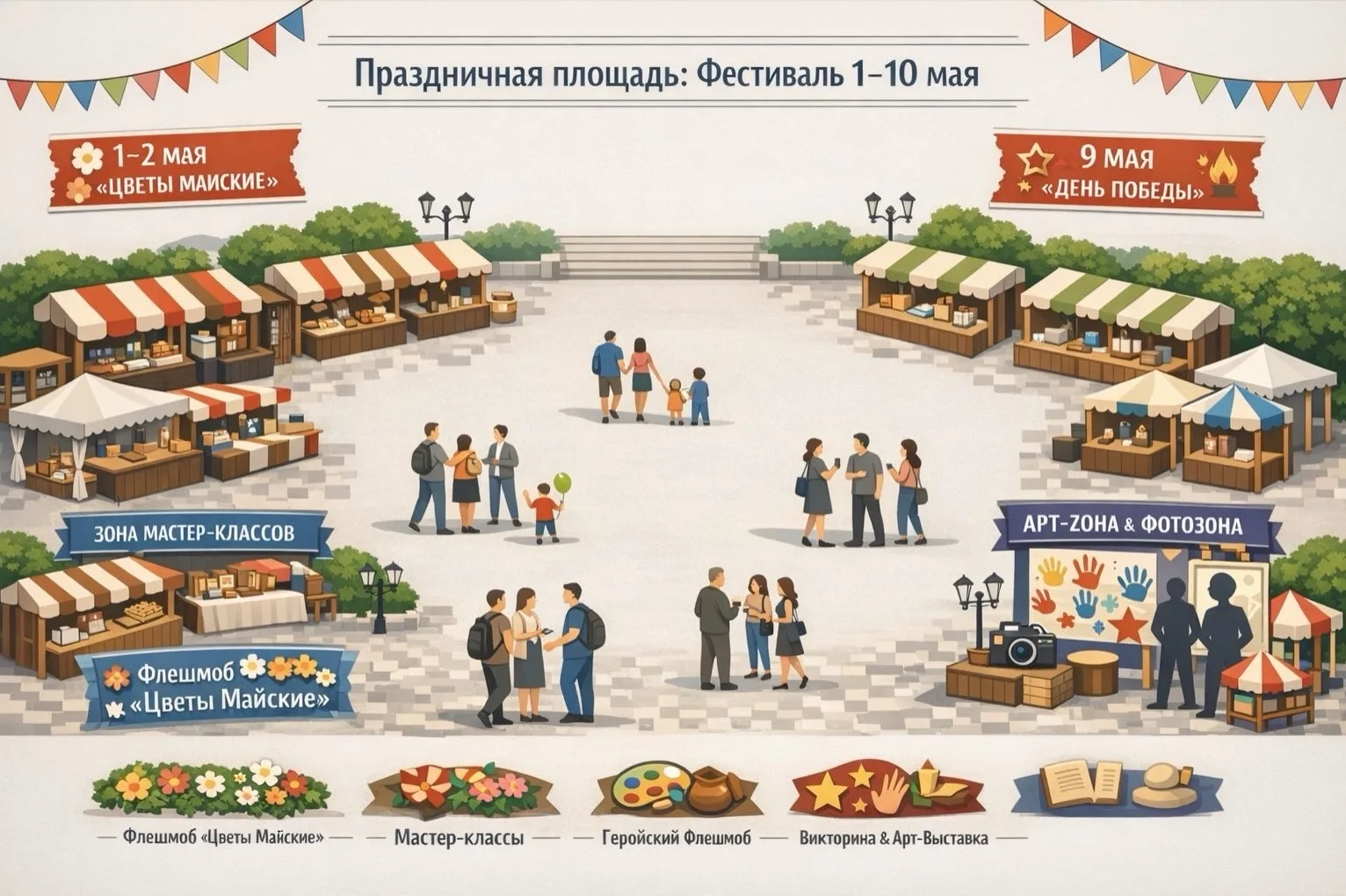 В программе – ежедневные концерты и яркие шоу-программы, интерактивные зоны и творческие мастер-классы, в том числе по созданию картин. Кроме того, запланированы настольные и активные игры и ярмарка изделий ручной работы. Также для посетителей организуют ресторанную зону с разнообразным меню.