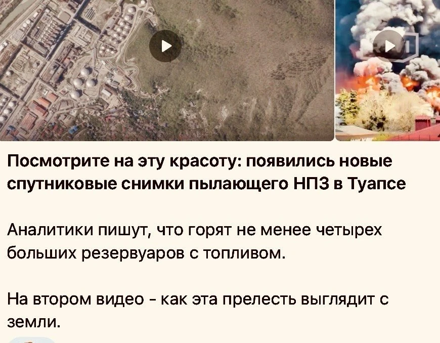 Украинские инфопомойки радостно смакуют последствия террористического удара по Туапсе